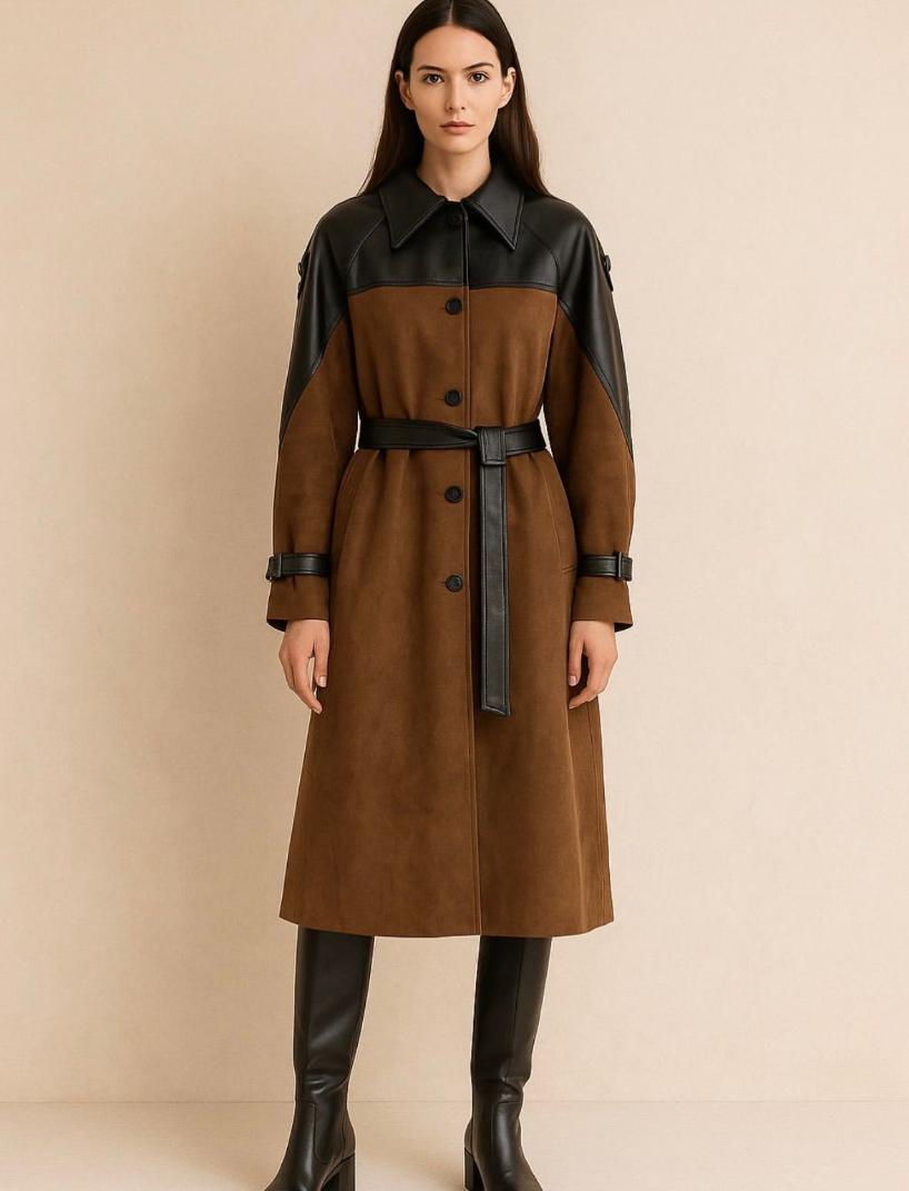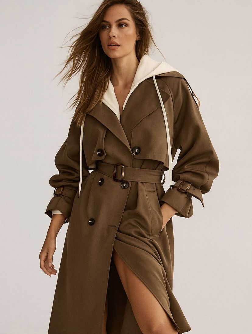 Noir Luxe Trench — a modern reimagining of classic elegance. Crafted from a subtly shimmering...