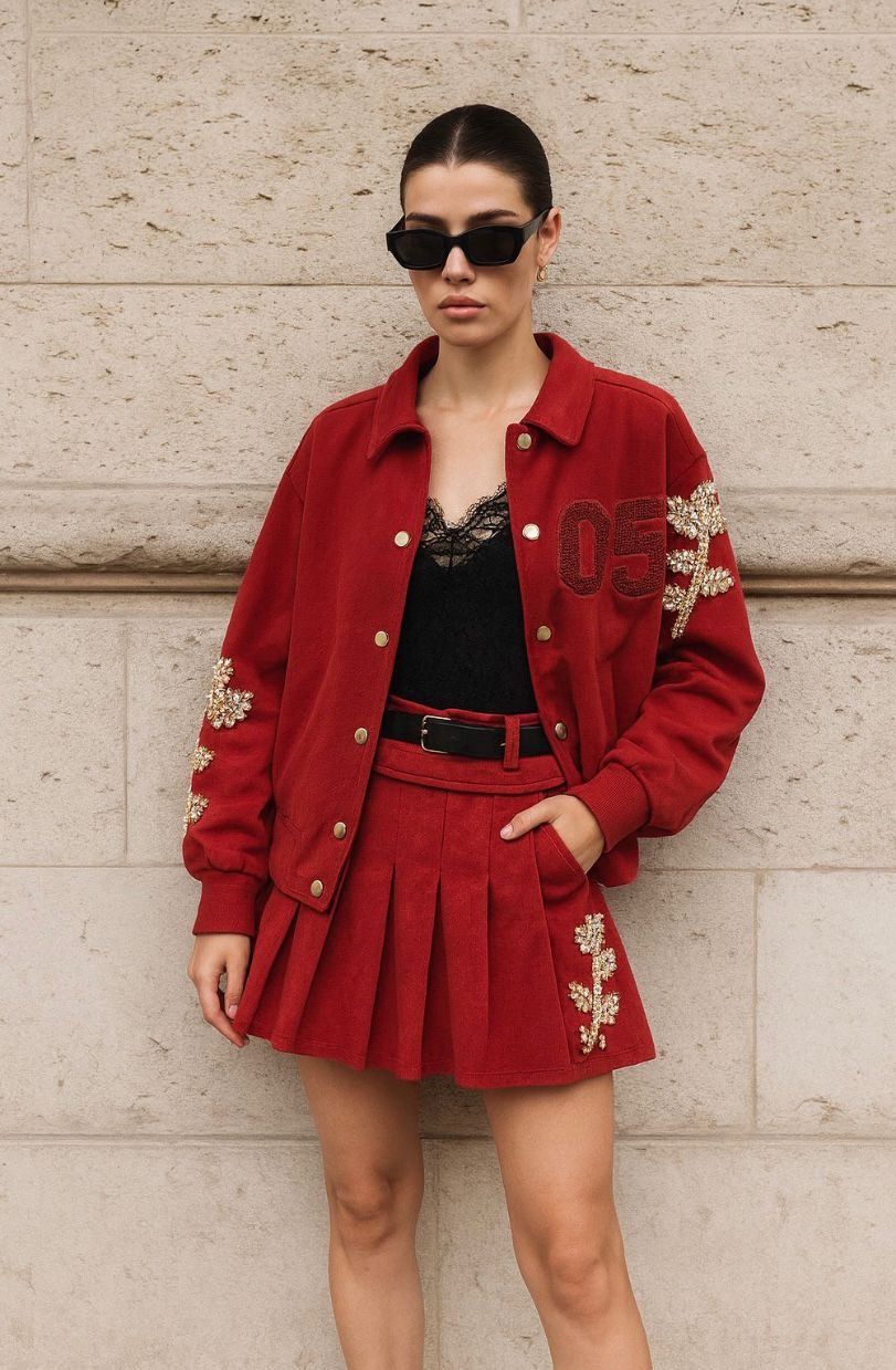 Set - Baseball Fashion Jakcet And Skirt Deep Red