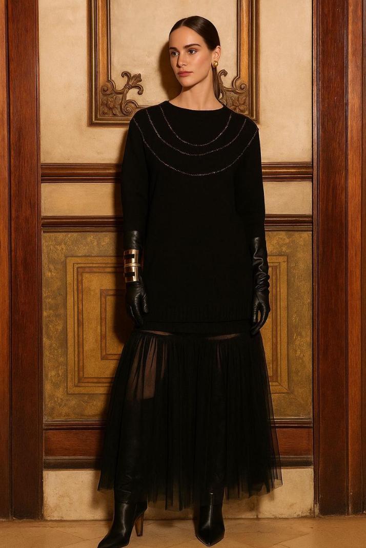 Noir Luxe Trench — a modern reimagining of classic elegance. Crafted from a subtly shimmering...