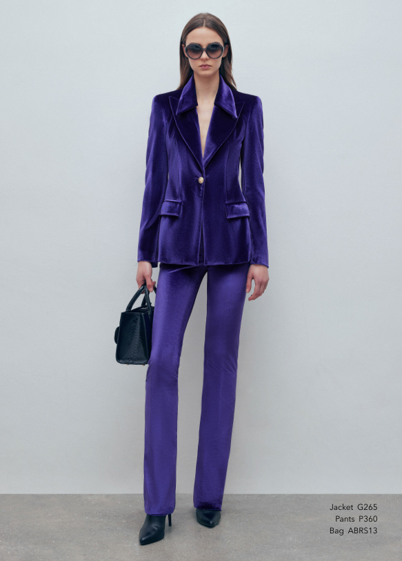 Single-breasted blazer crafted from stretch velvet in a slim fit, featuring golden button. Matching satin lining...
