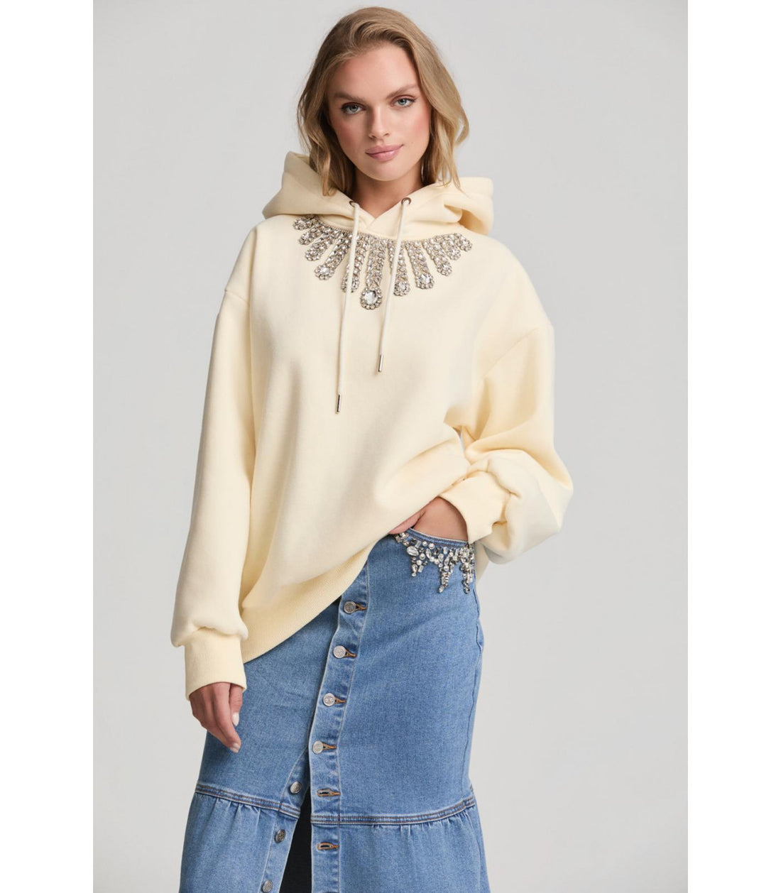 Elevate your casual look with this chic grey embellished lounge set. The oversized sweatshirt features...