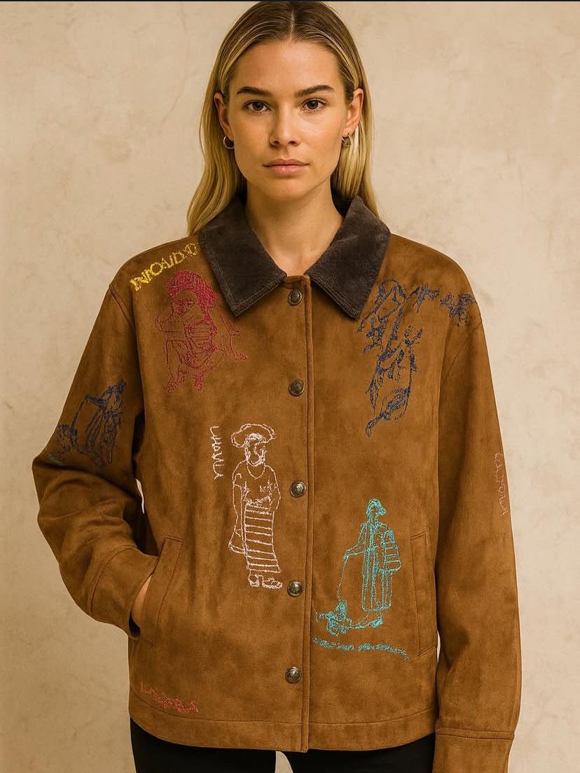 modern twist on classic suede. Crafted in warm caramel brown with a contrasting dark collar...